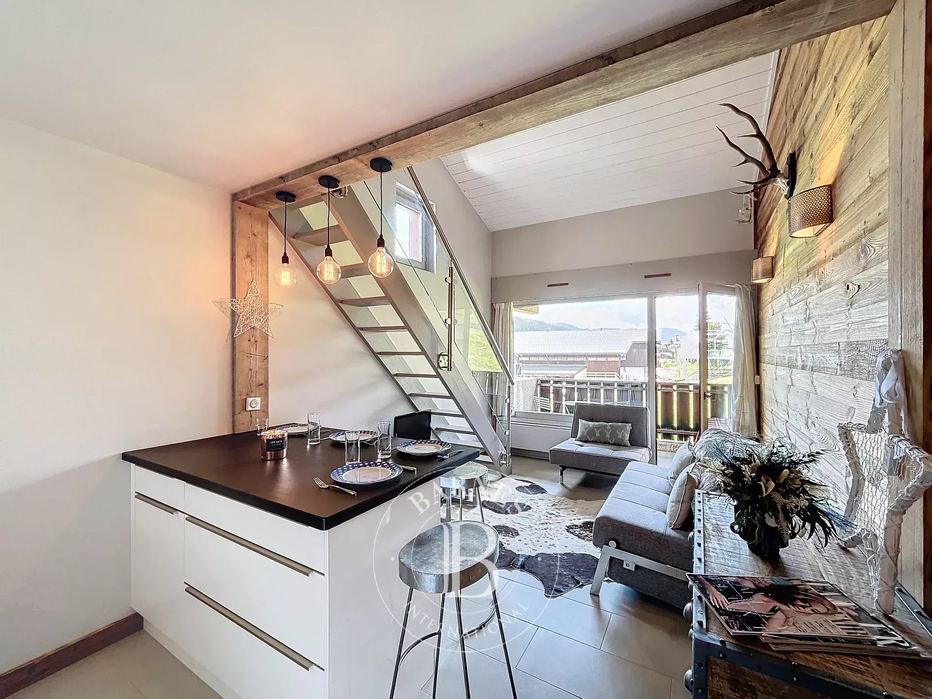 Les Gets - Appartement T2 duplex de 33,49 m² (surface habitable) et 38,15 m² de surface utile - 1 Chambre - 1 cabine - 2 salles de bains - Terrasse Sud/Ouest - Centre village et pied des pistes