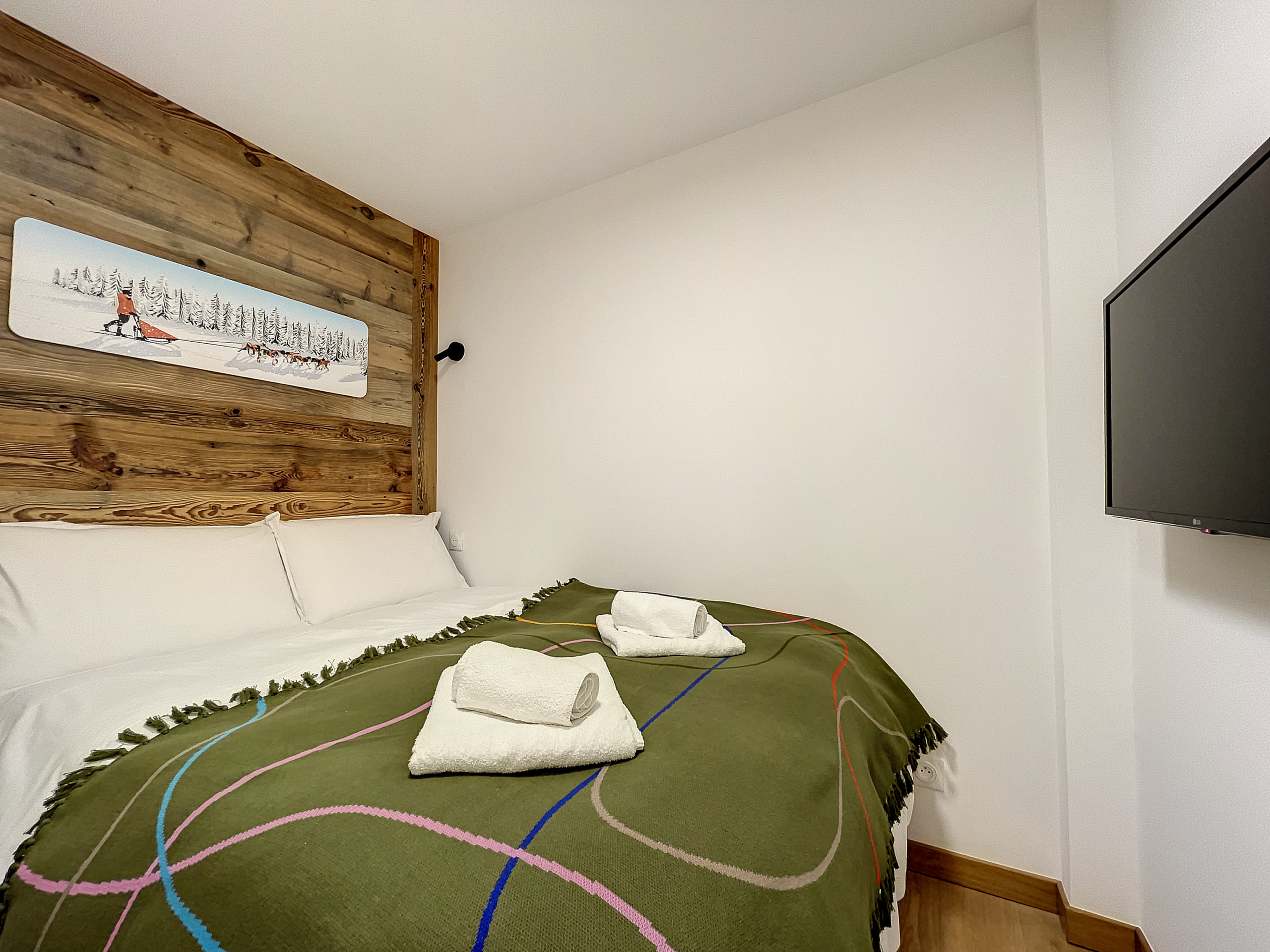 A cabin bedroom offering a double bed of 140.