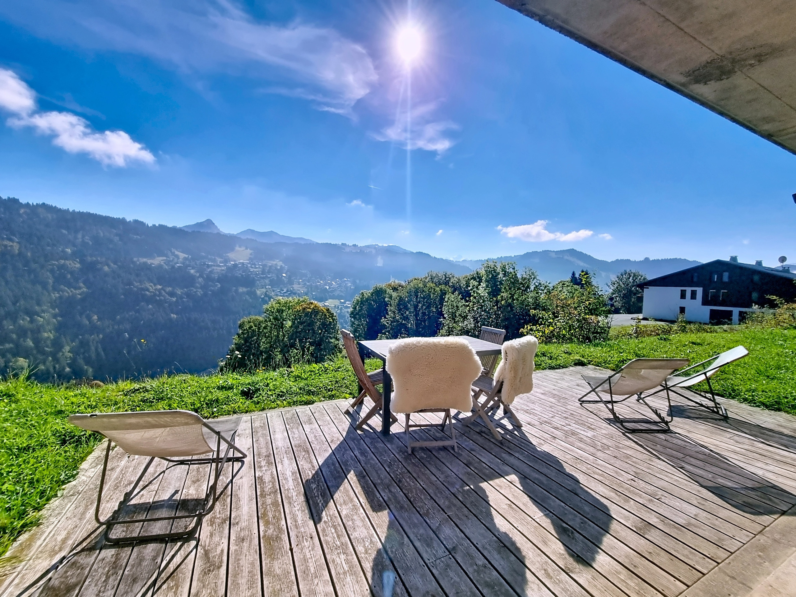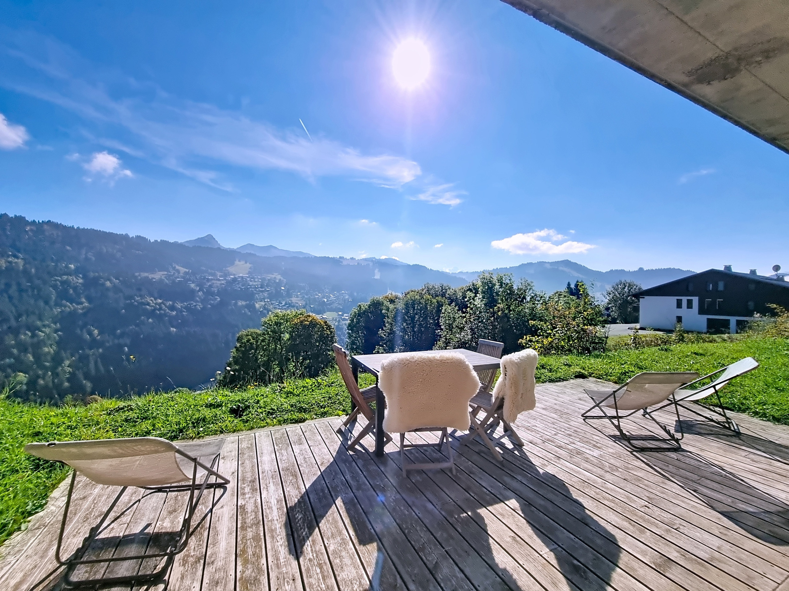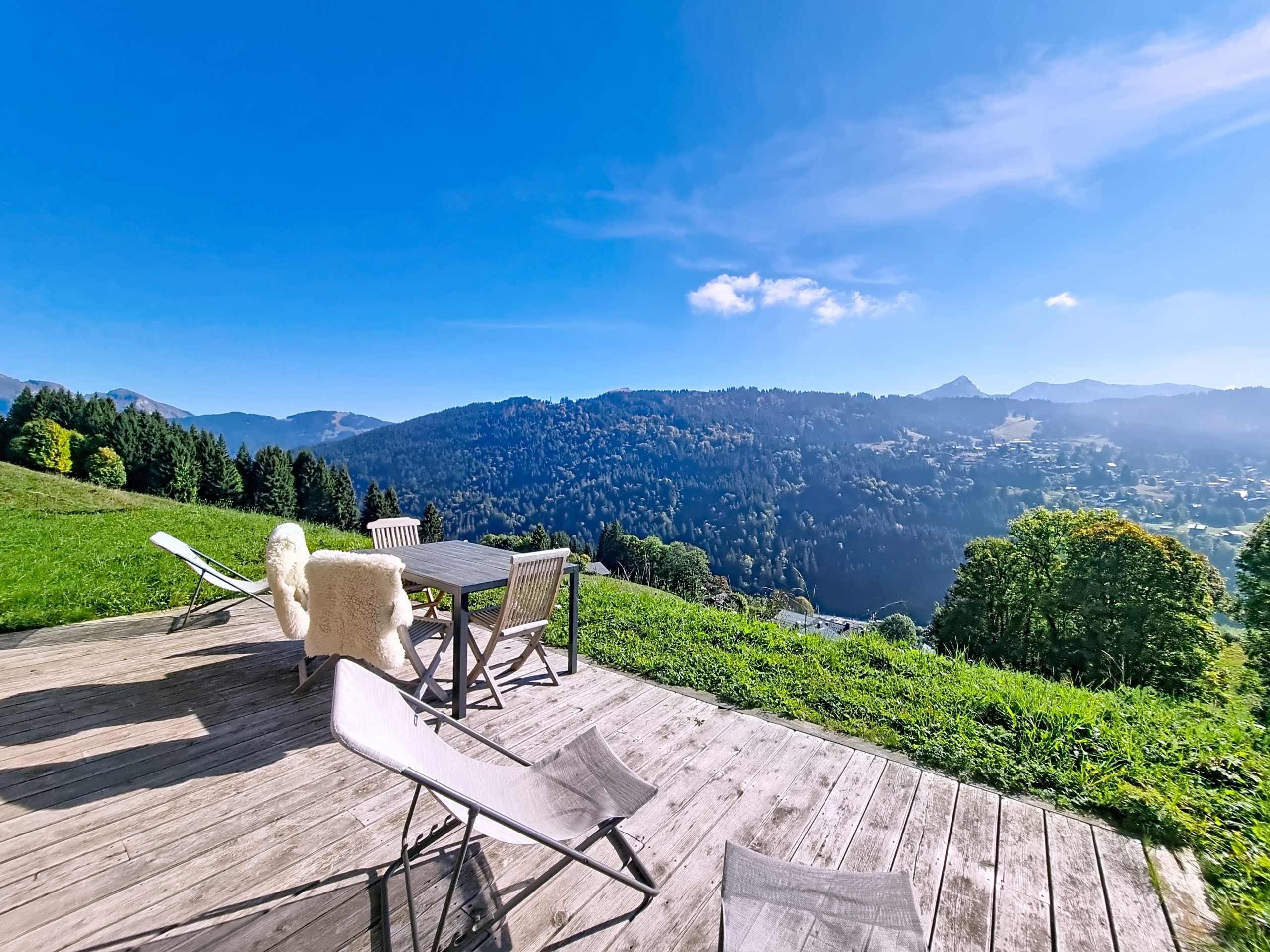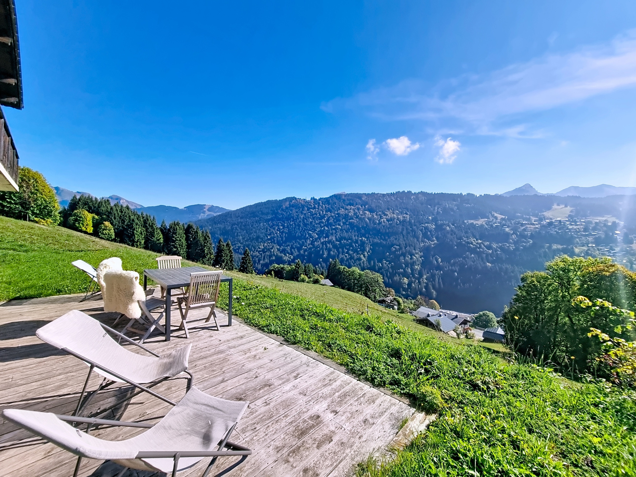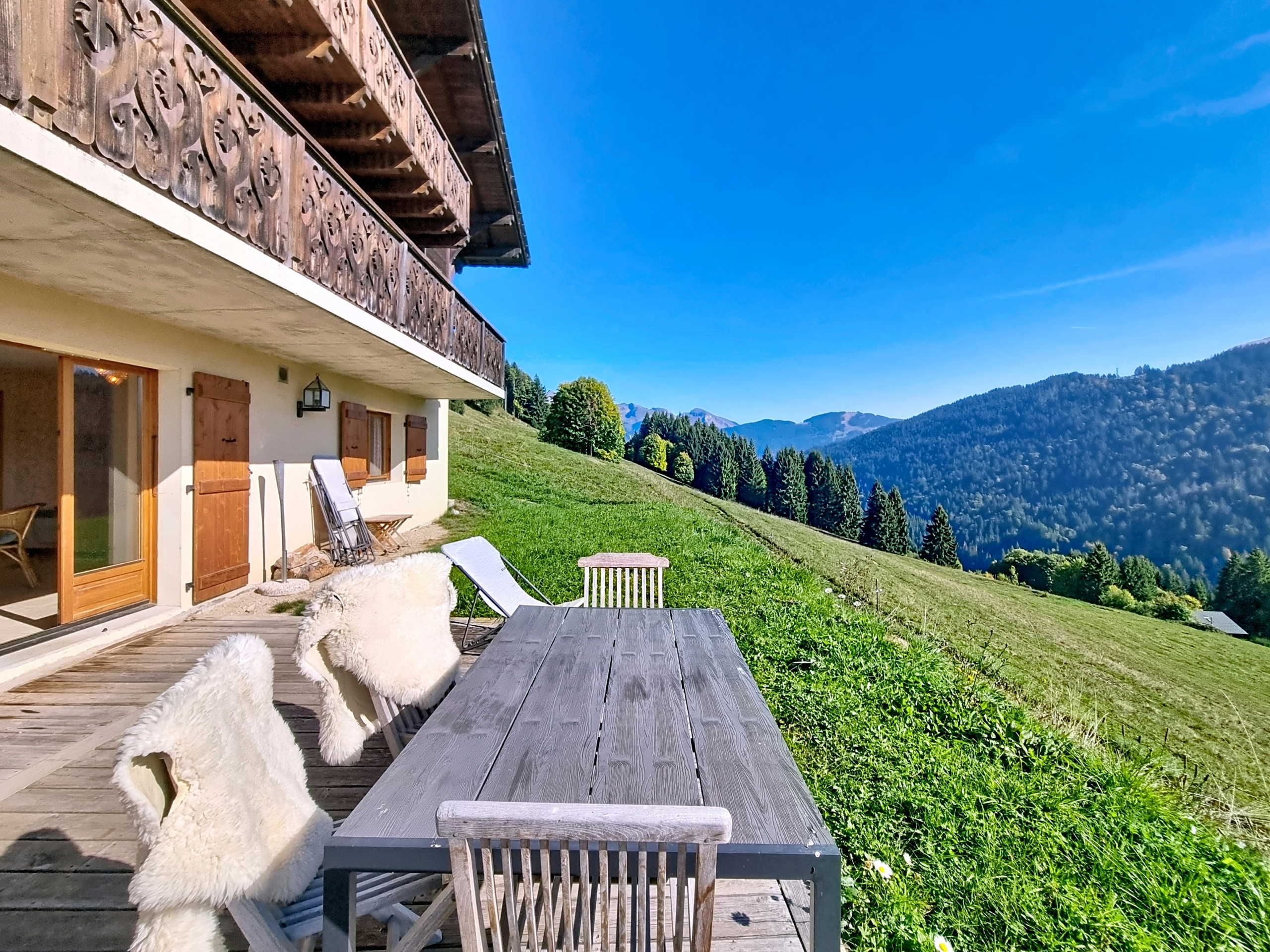 Ideally located on the south-facing slope of Les Gets, this bright 80 m² apartment benefits from a superb unobstructed view of Mont Blanc and the surrounding peaks.