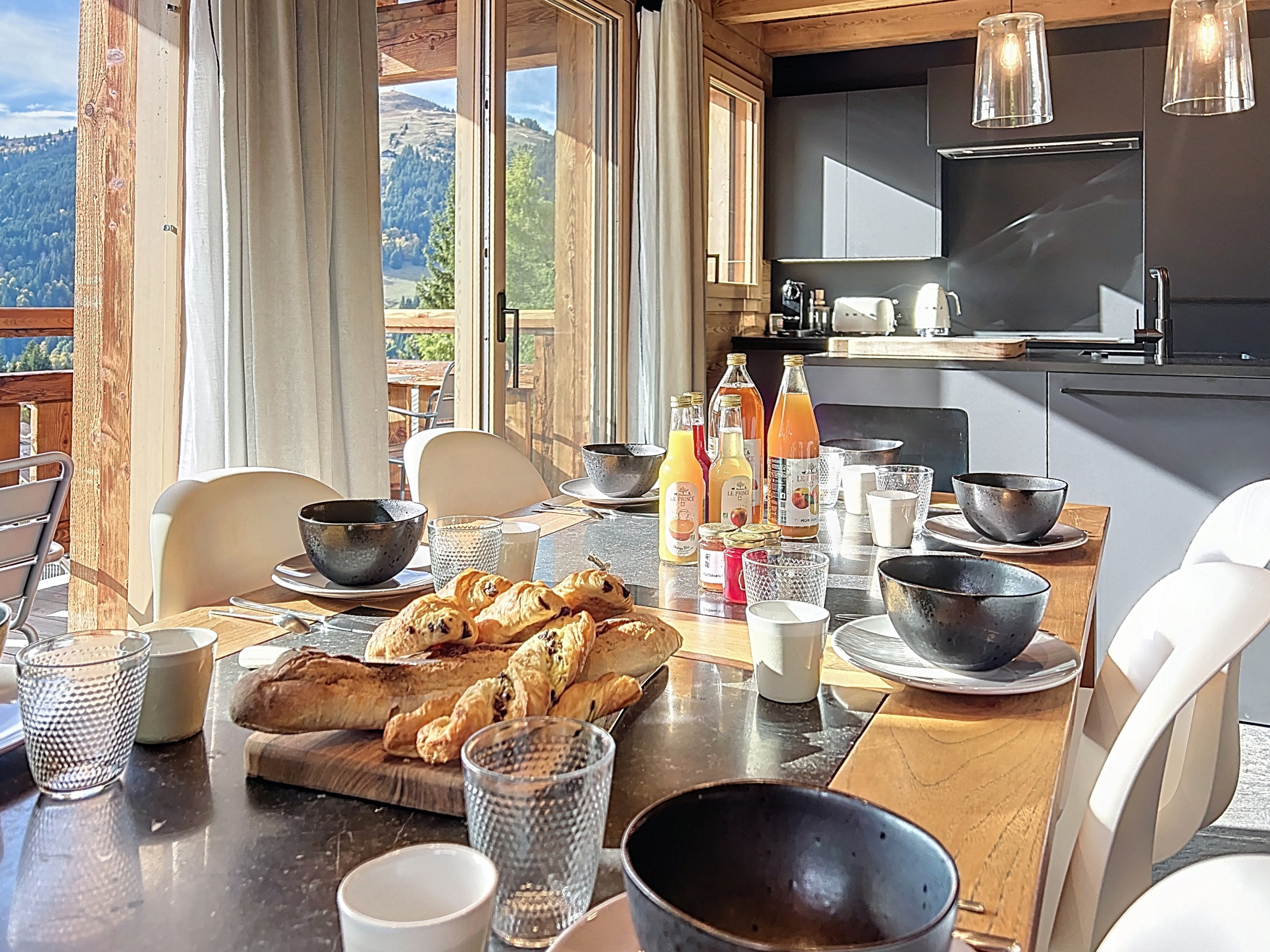 Outside, the sunny terrace is a true haven of relaxation: enjoy a Nordic bath with an unobstructed view of the mountains, or an aperitif spot bathed in the setting sun.