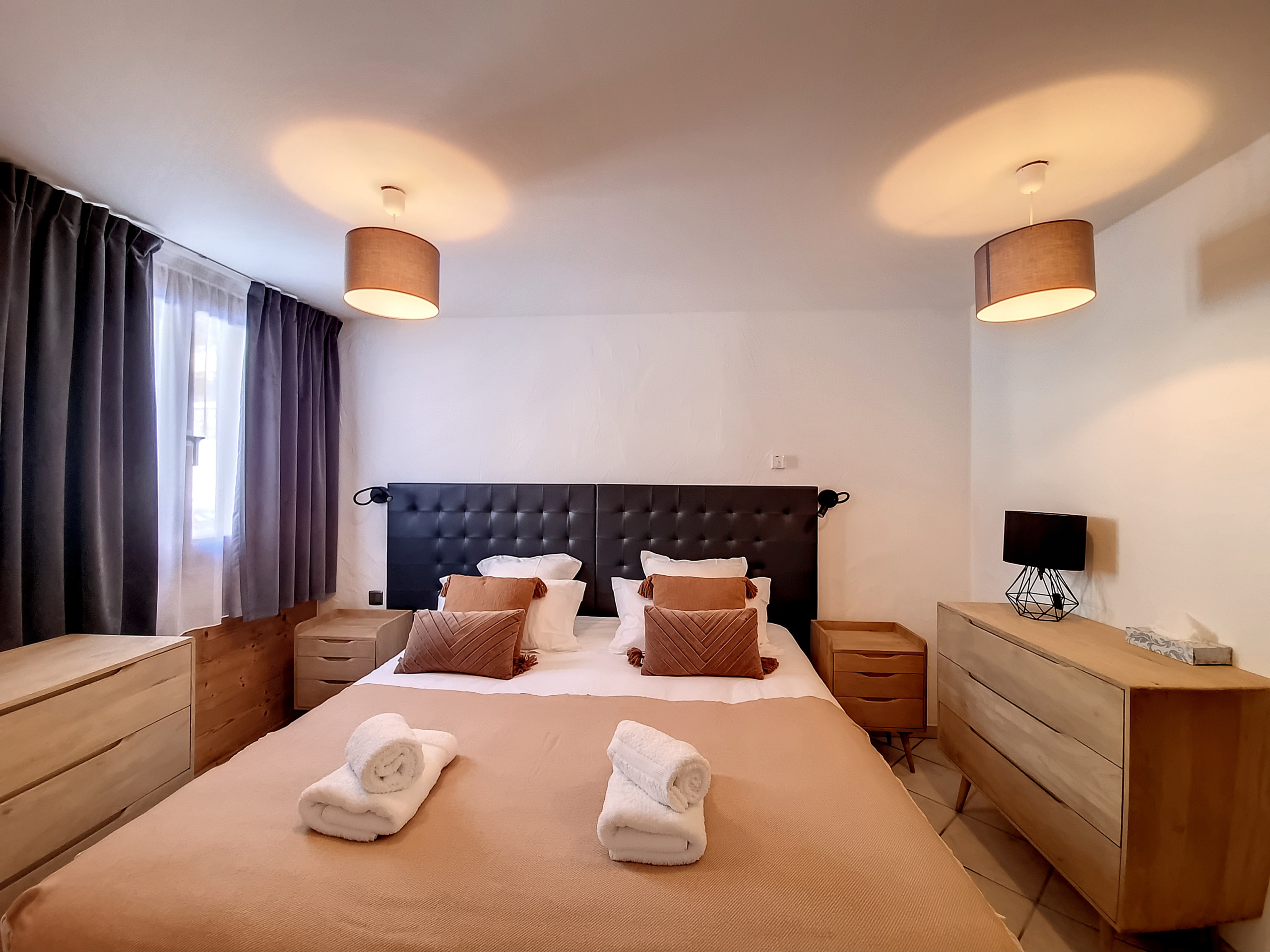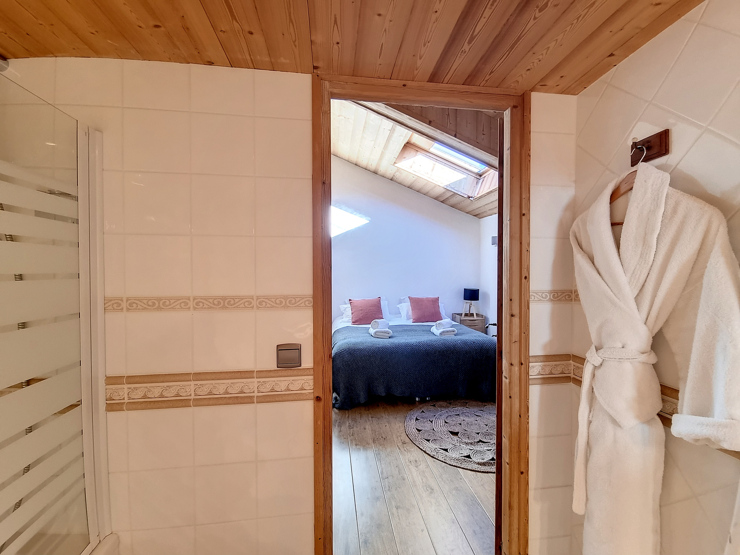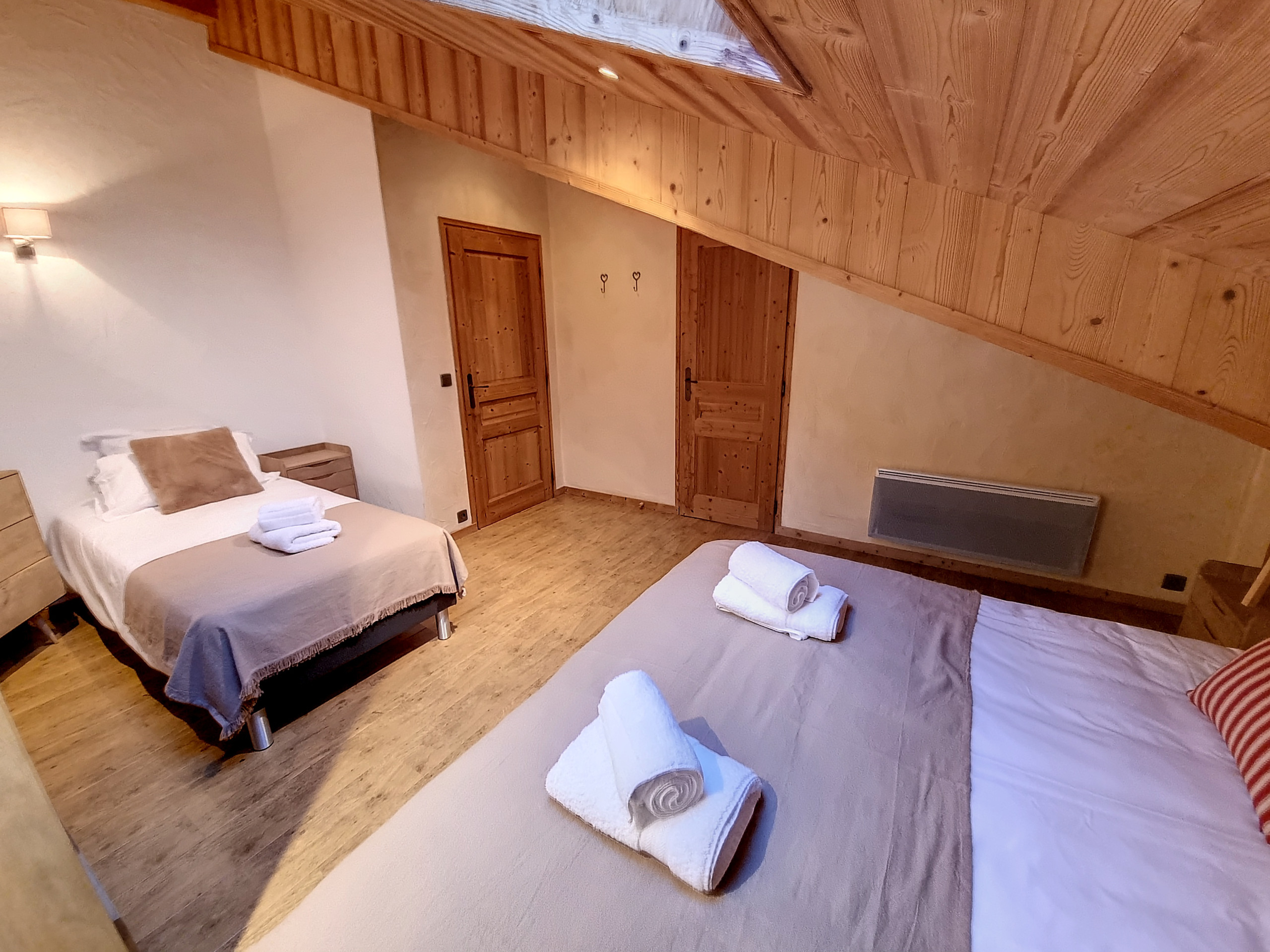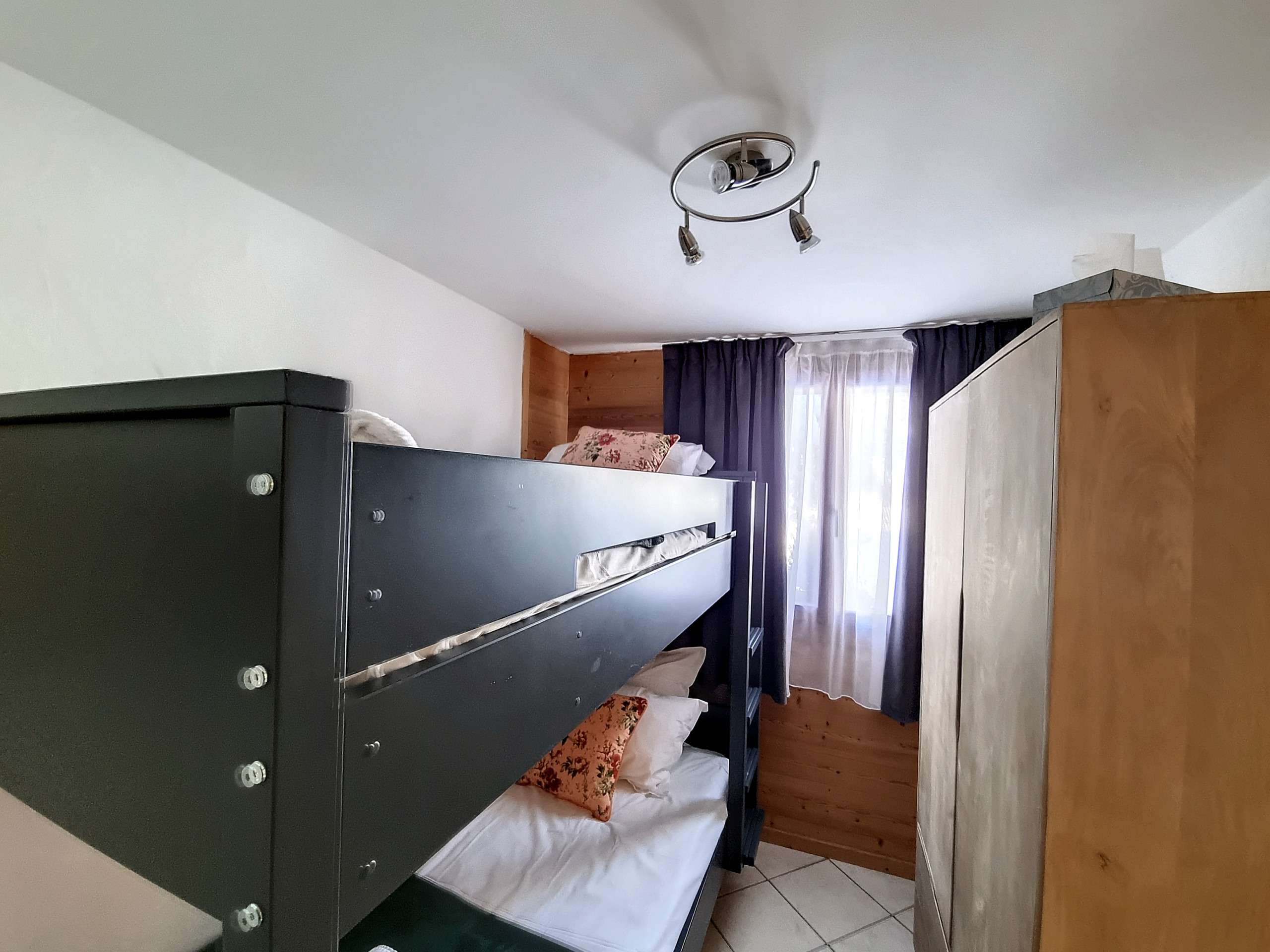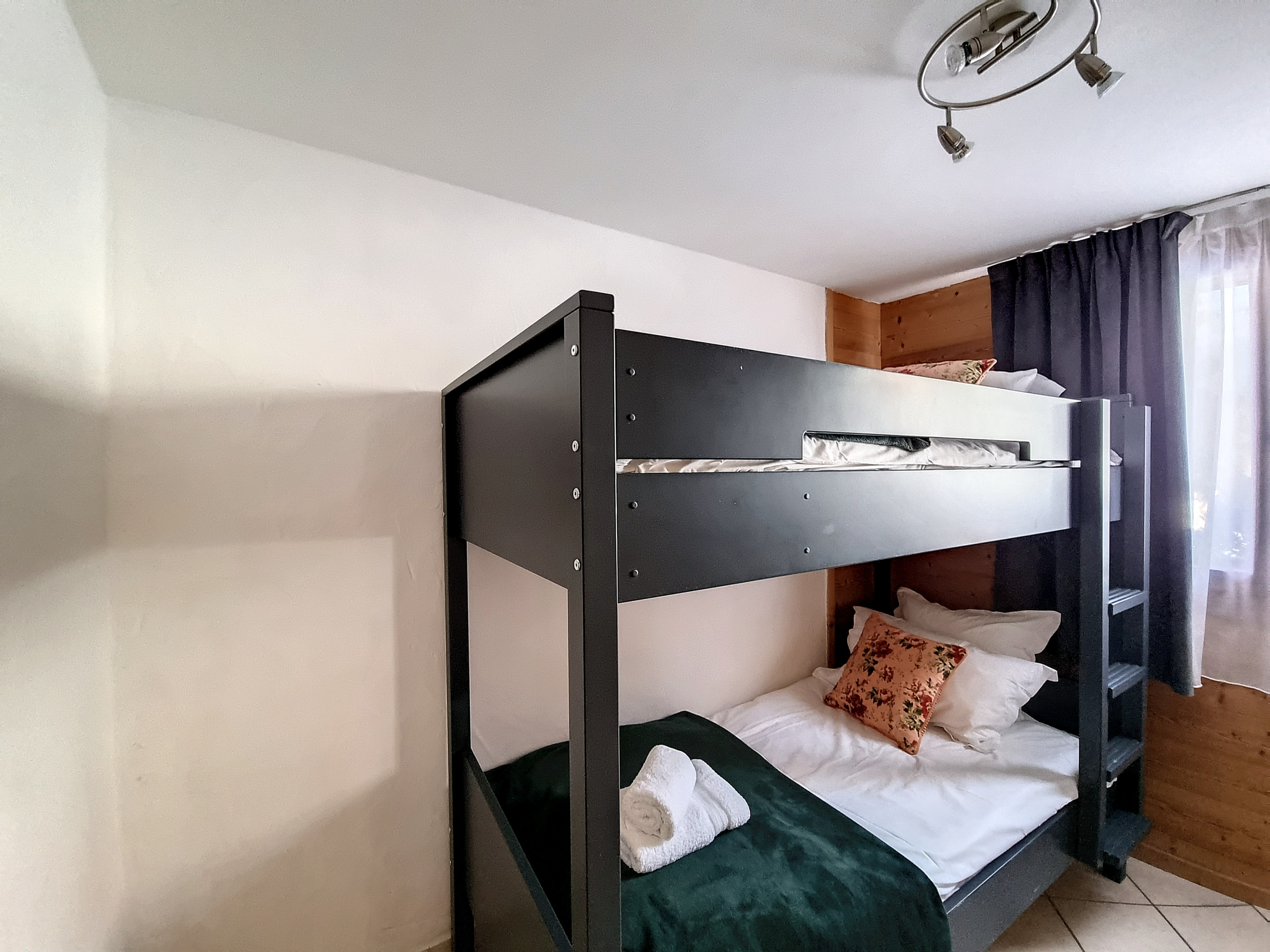 Les chambres ont été conçues avec votre confort à l'esprit. La chambre principale dispose d'un lit pour deux personnes (180x200), séparable en deux lits individuels (90x200) selon vos préférences, et bénéficie d'une salle d'eau privative. Les deux autres chambres sont également équipées de salles de bain privatives, offrant une intimité appréciable. Les lits superposés dans la deuxième chambre ajoutent une touche ludique à l'ensemble avec également une salle de douche en suite.